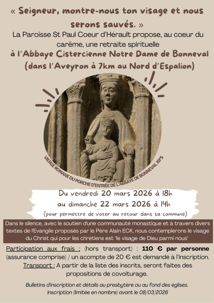 « Tous les Évènements Retraite spirituelle à l’Abbaye Cistercienne Notre Dame de Bonneval 20 mars - 22 mars « Saint Valentin Autrement – Paroisse Saint Paul Coeur D’Hérault Ajouter au calendrier Google Agenda iCalendar Outlook 365 Outlook Live Détails Début : 20 mars Fin : 22 mars Lieu Abbaye Cistercienne Notre Dame de Bonneval France + Google Map